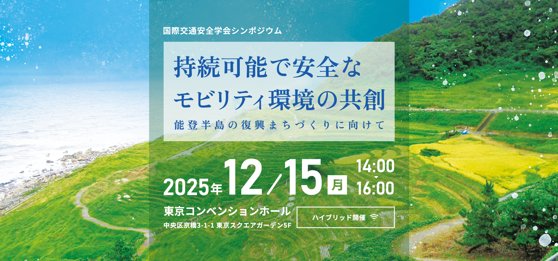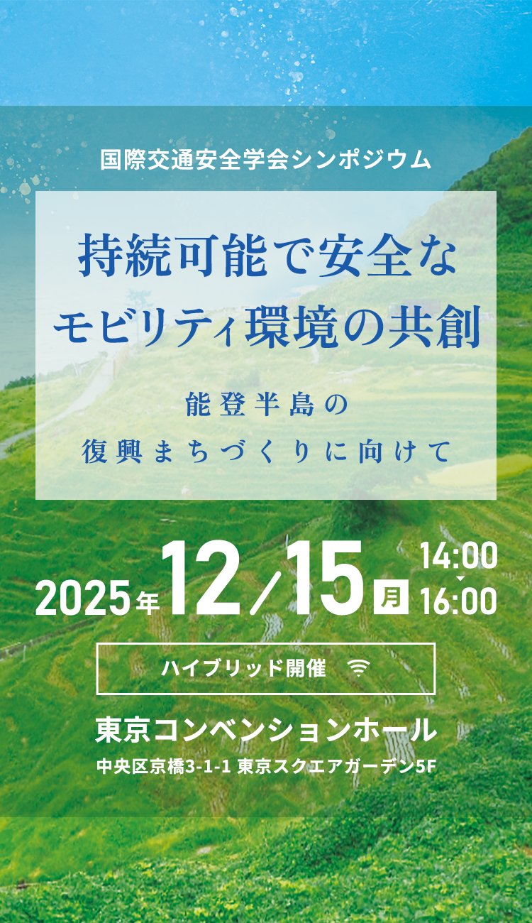 国際交通安全学会では、これまで自然・社会・人文等の諸領域にまたがる「学際性」と、国内・海外という限られた発想にとらわれない「国際性」を重視して、半世紀以上にわたり「理想的な交通社会の実現」に向けて活動してまいりました。能登半島地震の復興において、様々な学協会が多様な学術的な支援や提言を行う中で、本会におきましても一日も早い交通社会の再生を目指して、本会の特徴である「実際性」と「先見性」を重視しつつ、能登半島の復興まちづくりに向けた独自の調査・研究を行ってまいりました。